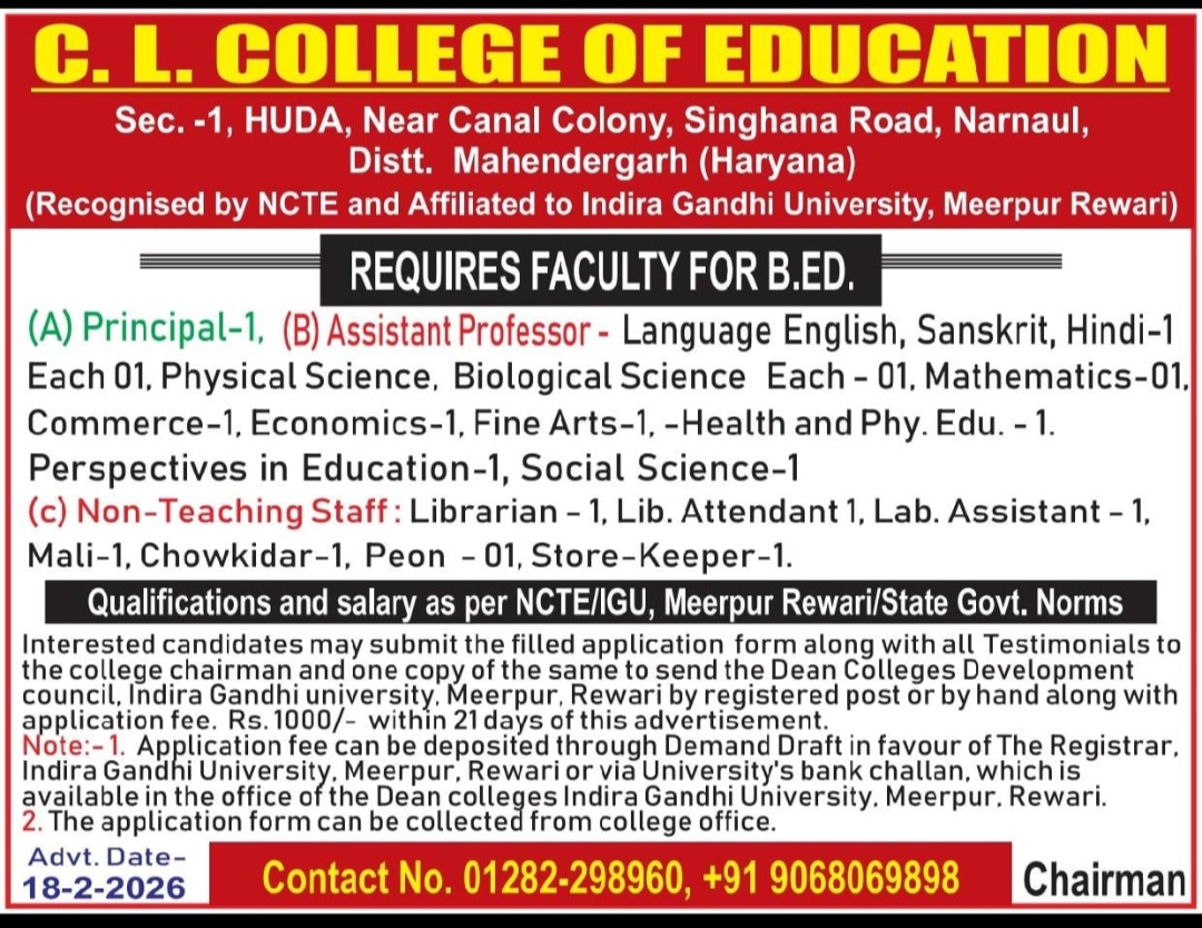 Advertisement C. L. COLLEGE OF EDUCATION NARNAUL